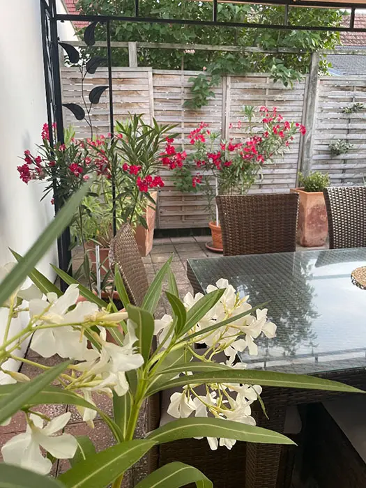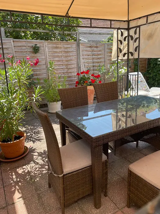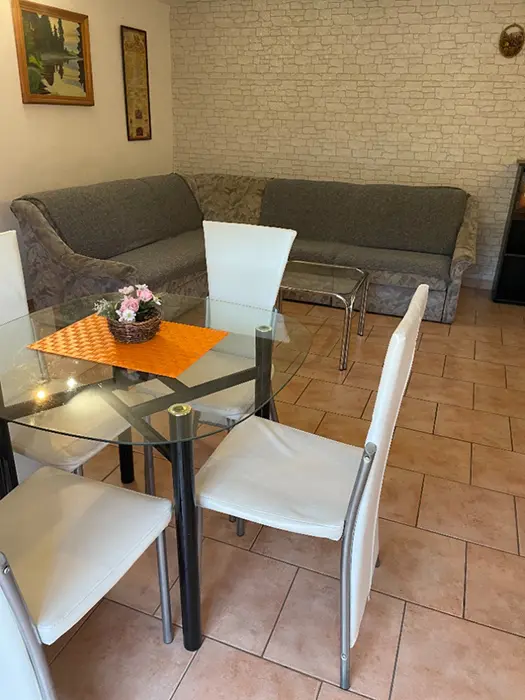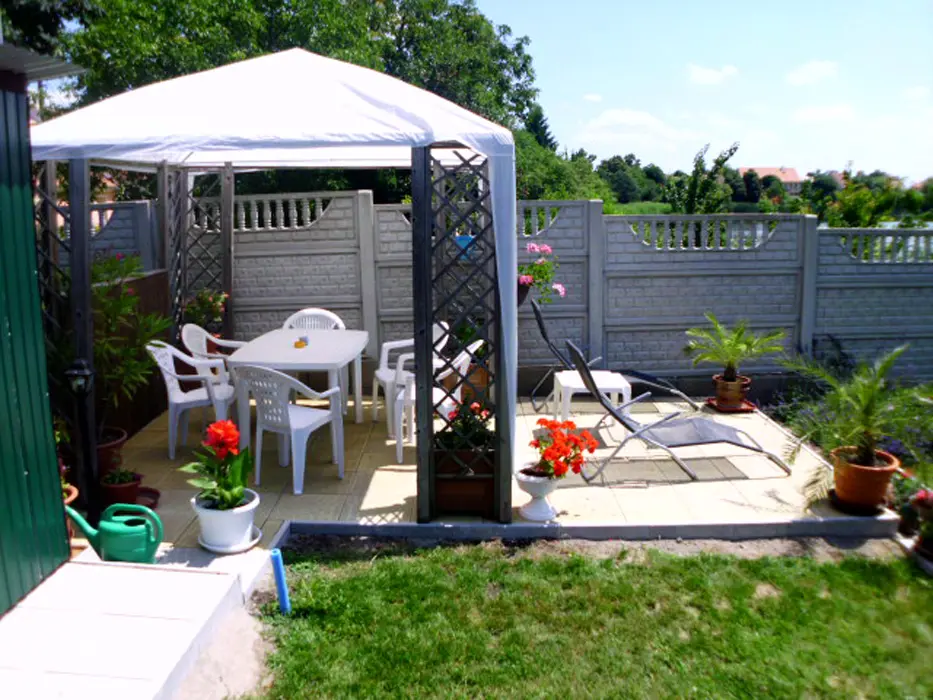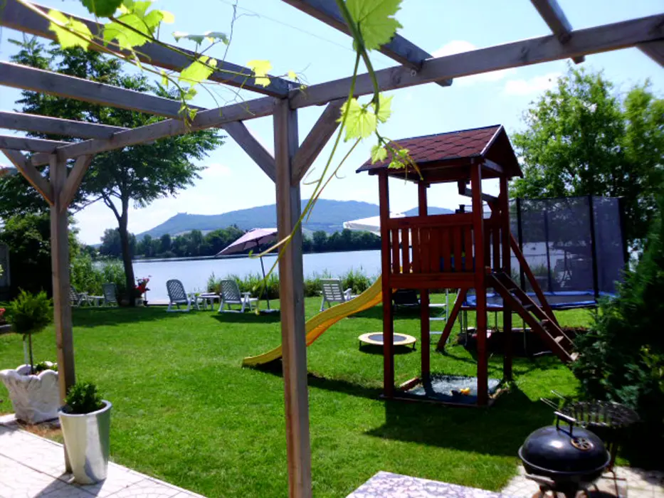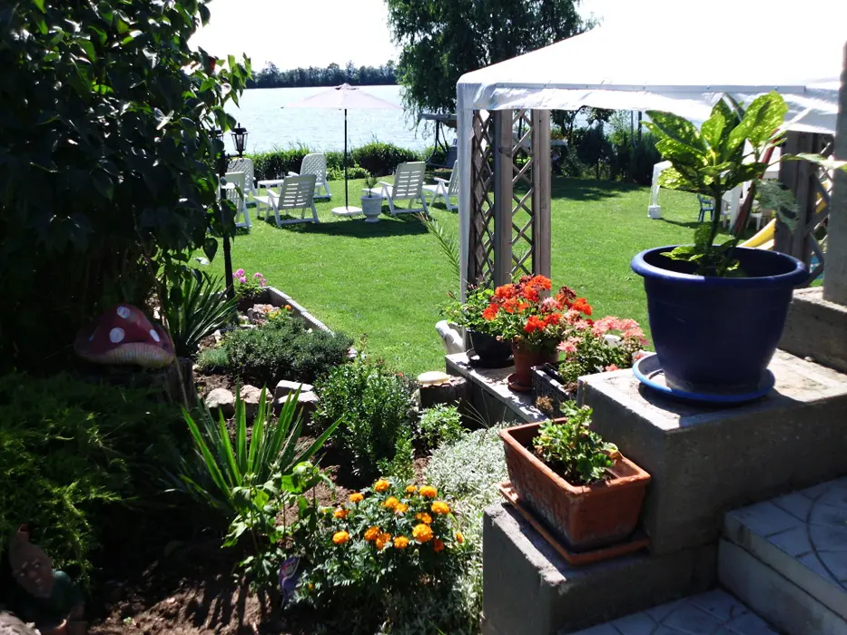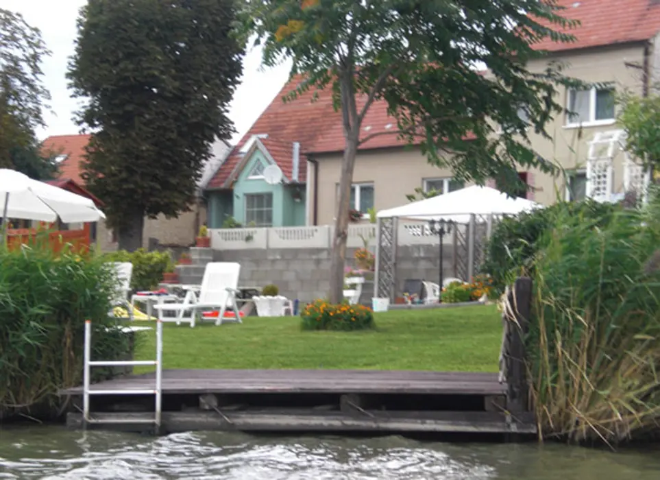Do apartmánu je vlastní vchod v zadní části domu, průjezd na kola, vlastní posezení ve dvoře u grilu, další posezení je u vody na pozemku majitele s lehátky a dalším grilem, 1 den možnost půjčení lodičky s vesly zdarma