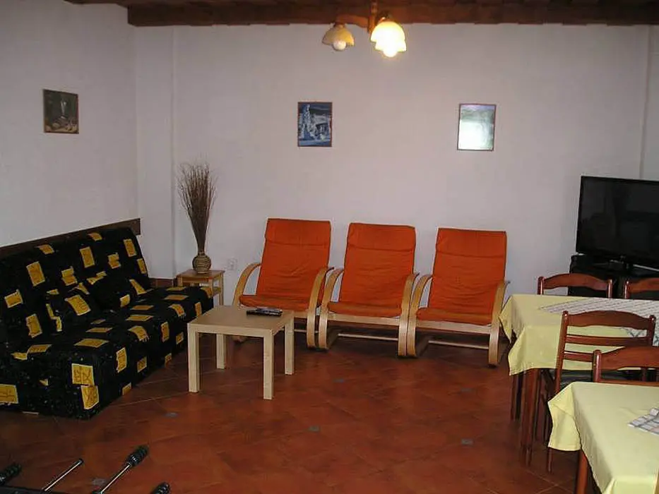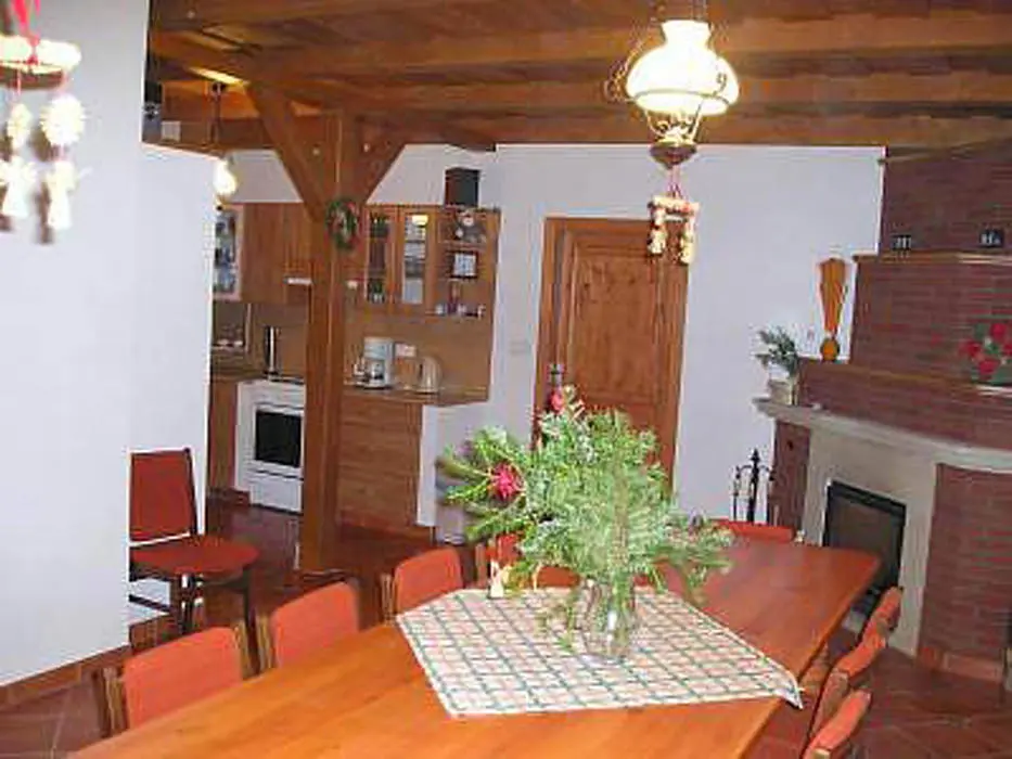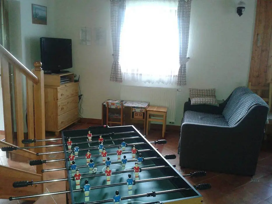 Obytná místnost - rozkládací pohovka, BTV+SAT, minivěž a krbová kamna spojená s kuchyňským koutem - el. spotřebiče, sklokeramický sporák, myčka, velká lednice, mikrovlnka, varná konvice, elektrický gril, toustovač, topinkovač, nádobí. Úklidové prostředky, toaletní papír, utěrky a ložní prádlo jsou k dispozici.