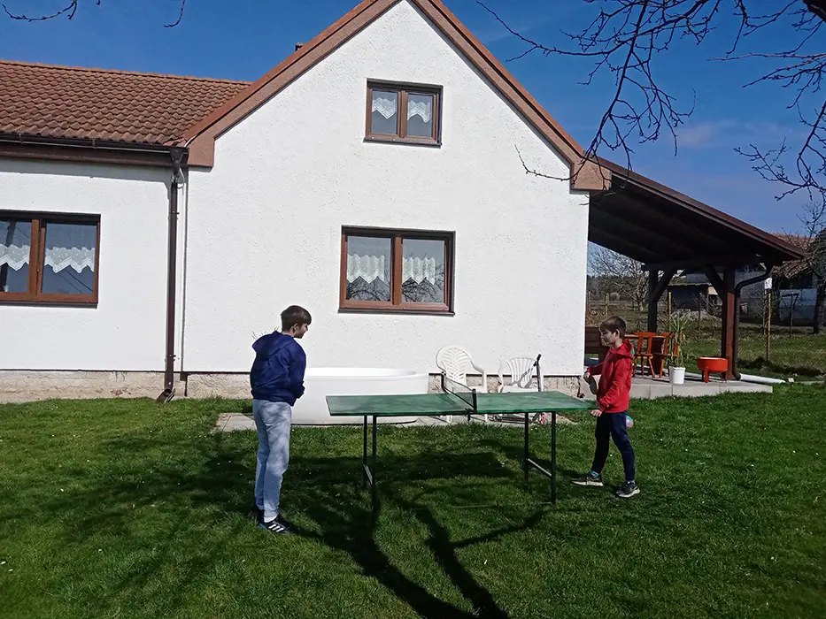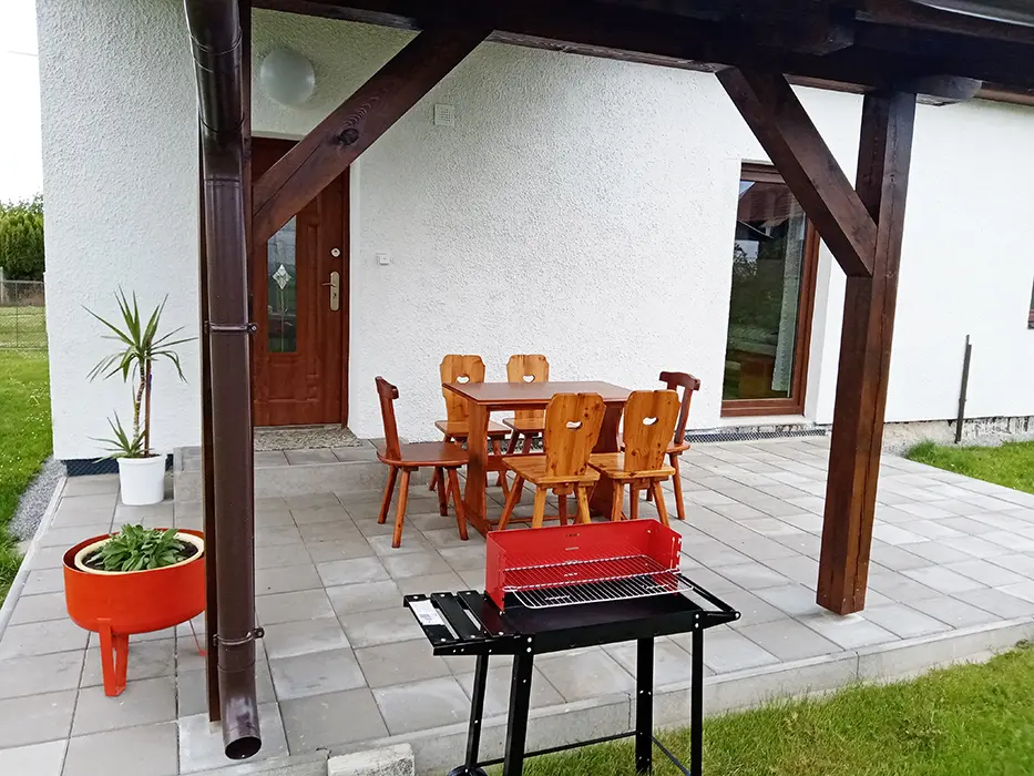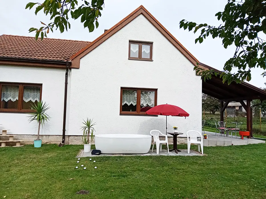 Venkovní kryté posezení, gril, mini ping pong, petanque, na vyžádání malý dětský bazének - 1,88x 0,46 m, pro osvěžení velká akrylátová vana