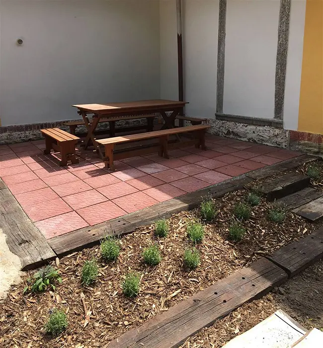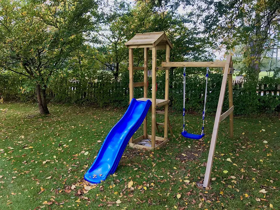 Terasa s posezením, pro děti - skluzavka a prolézačky
