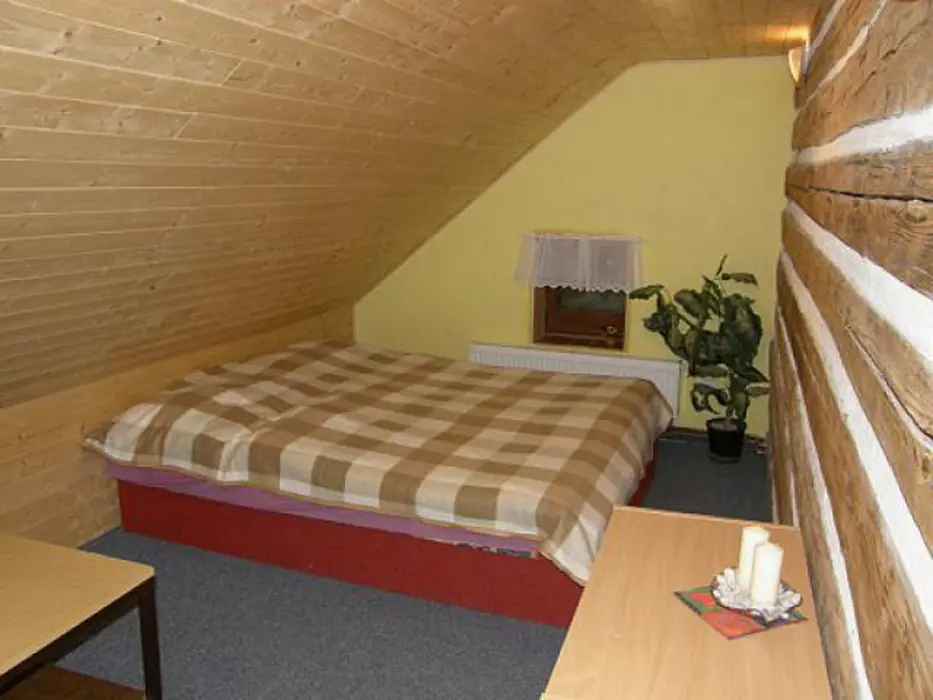 Podkroví - 2 ložnice 1x2, 1x3 lůžkova, malá kuchyňka - varná deska, lednice a mikrovlnná trouba, varná konvice, TV/SAT, sprchový kout + WC