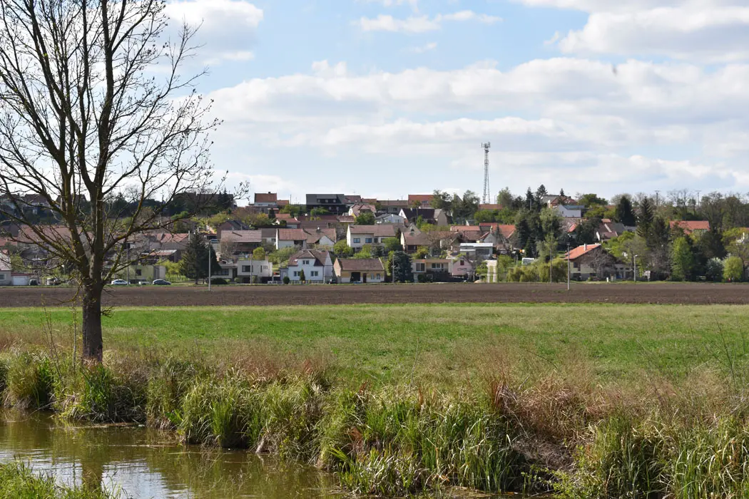 12 km Břeclav, 3 km Moravská Nová Ves, v obci Týnec v blízkosti lužních lesů