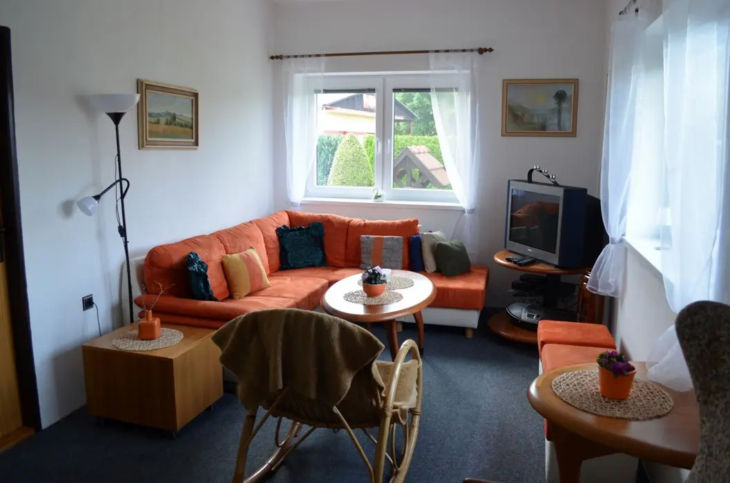 Posezení s přenosným grilem, zahradní sprcha, úschovna kol, klientům je k dispozici víceúčelové travnaté hřiště (volejbal, fotbal)