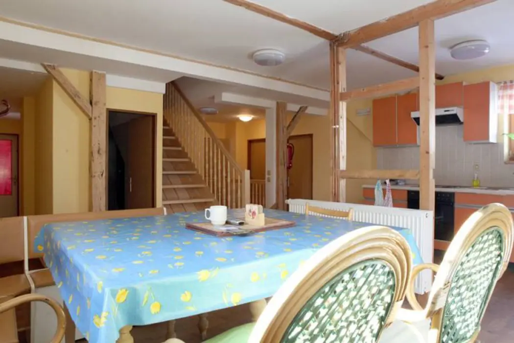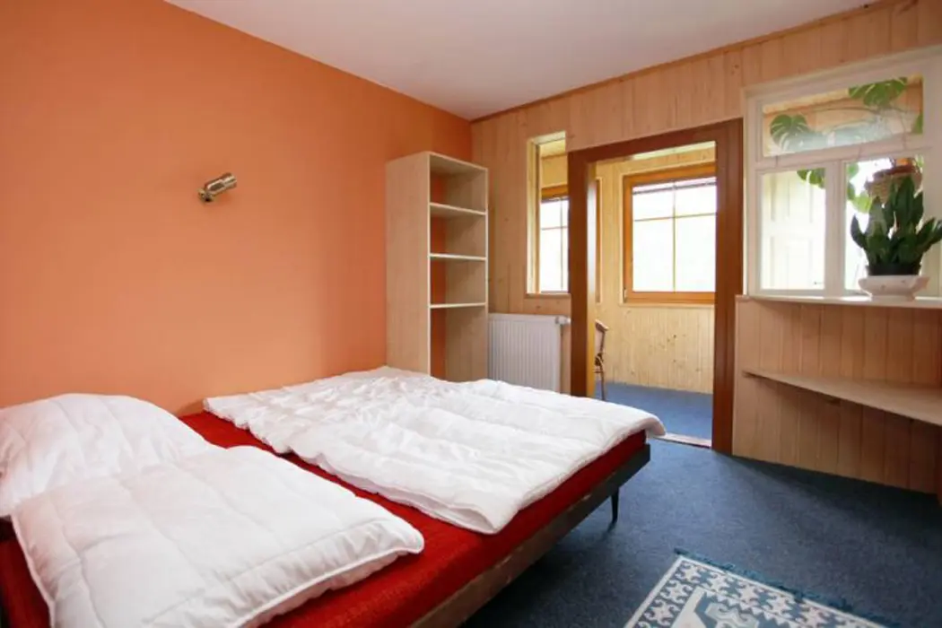 Přízemí: společenská místnost, TV. 1. patro - kuchyně - lednice, trouba, myčka, mikrovlnná trouba, rychlovarná konvice, nádobí. 5 ložnic - 1 patro: pokoj č.1 : 3 x lůžko + 1 x přistýlka s koupelnou (sprchový kout, umyvadlo + WC), pokoj č.2 : 3 x lůžko + 1 x přistýlka s koupelnou (sprchový kout, umyvadlo + WC), pokoj č.3: dvoupokoj s koupelnou (sprchový kout, umyvadlo + WC), první ložnice 2 x lůžko, druhá ložnice 1 x lůžko + 1 x přistýlka, každý pokoj vlastní vchod, pokoj č.5 : 6 x lůžko, pokoj č.6 : 3 x lůžko + 1 x přistýlka
