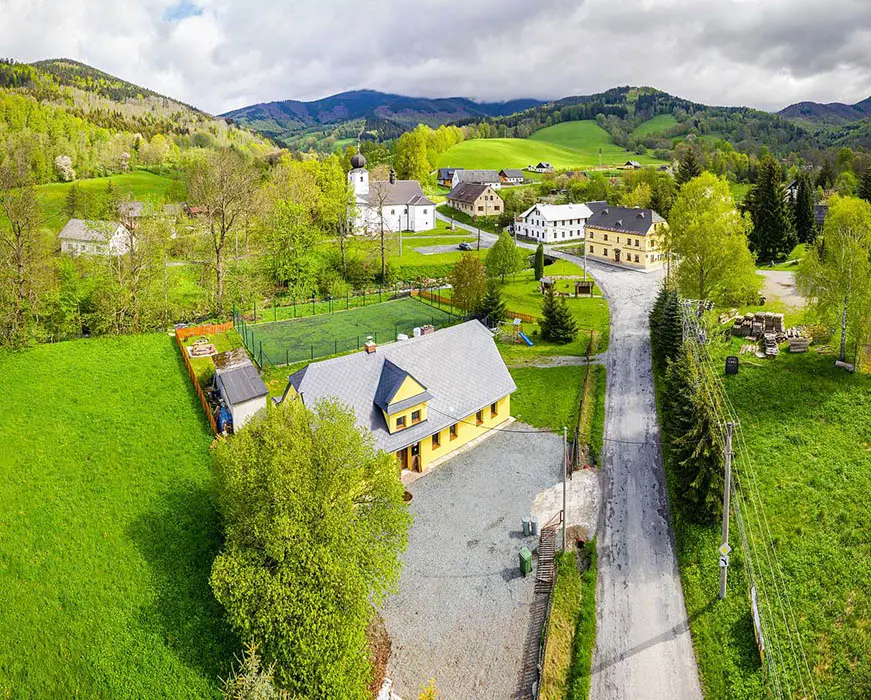 25 km Hanušovice, 16 km Šumperk, v obci Vernířovice
