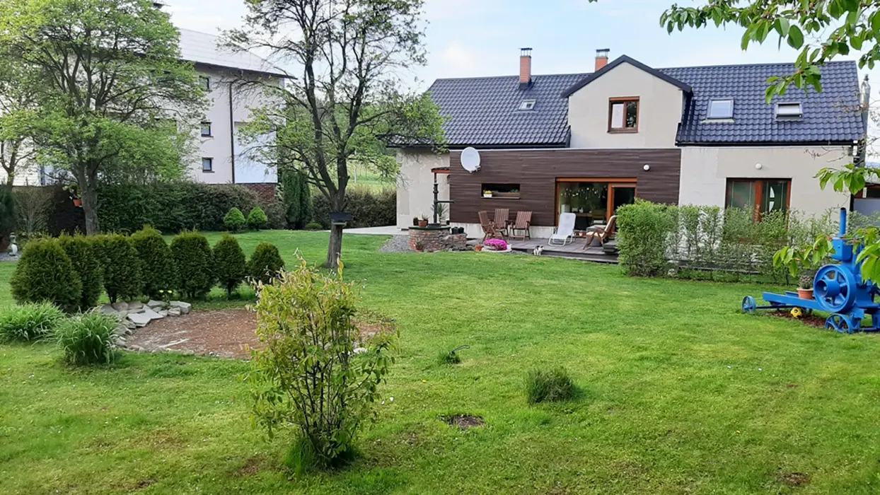7 km Frenštát pod Radhoštěm, na konci obce Veřovice. V části objektu bydlí trvale majitel, klienti mají samostatnou část s vlastním vchodem a vlastní posezení na zahradě