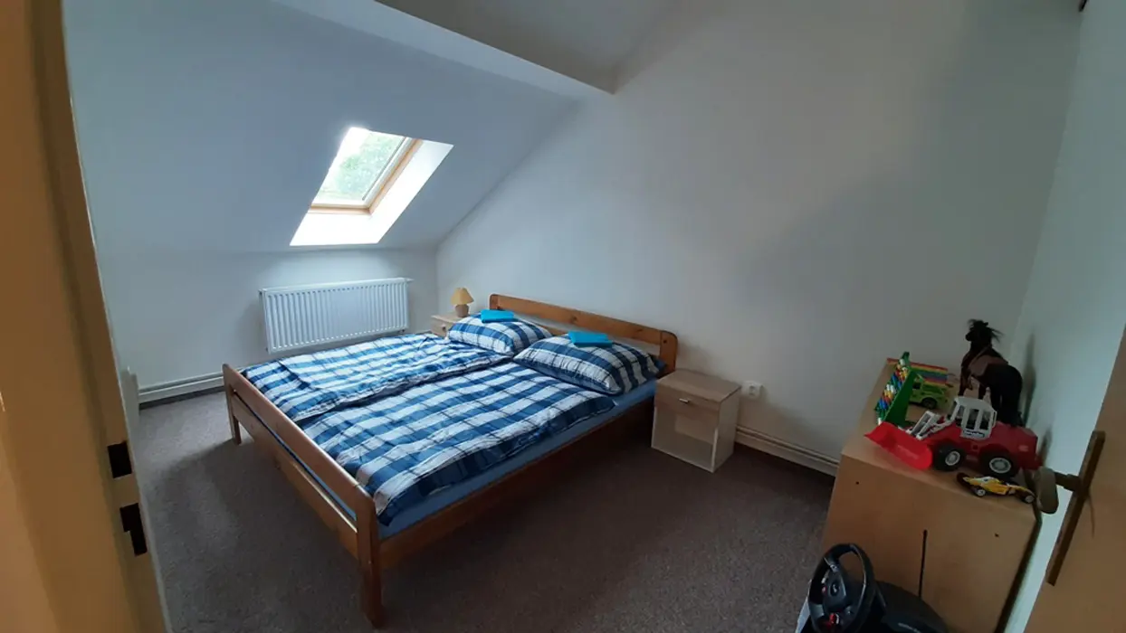 Apartmán 4+kk (80m2) se nachází v objektu, ve kterém bydlí majitel a má samostatný vchod. Vzájemně se neruší. Objekt se nachází na samotném konci obce Veřovice, na úpatí Velkého Javorníku, nedaleko malebného nádraží. Situován je cca 150 metrů od hlavní silnice a tím nabízí bezpečný pohyb kolem domu pro děti i zvířata. Další informace