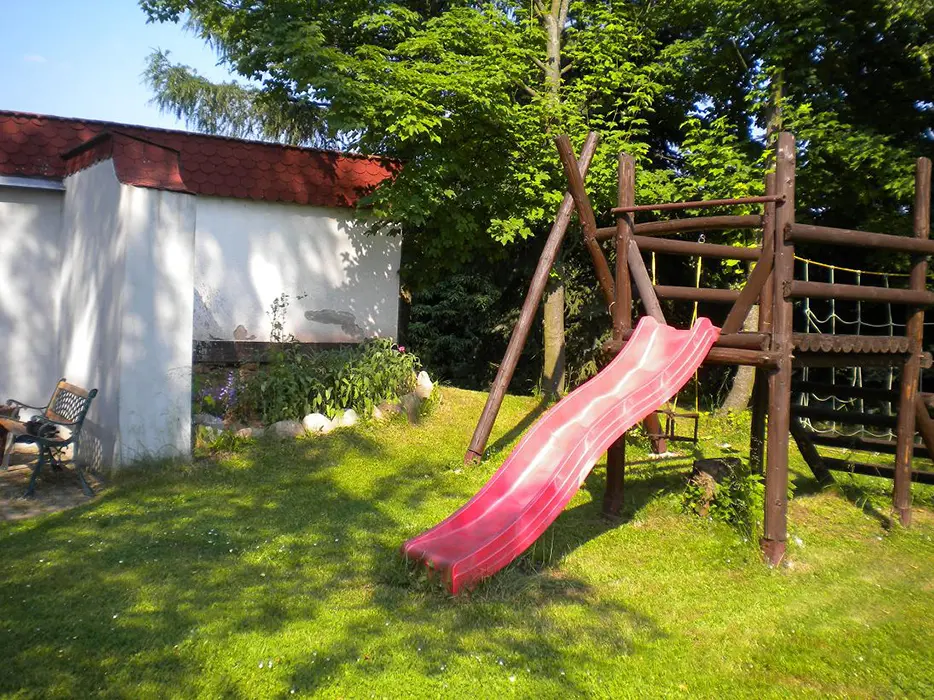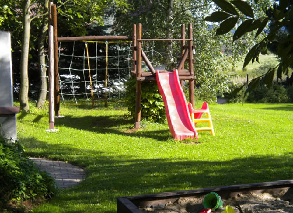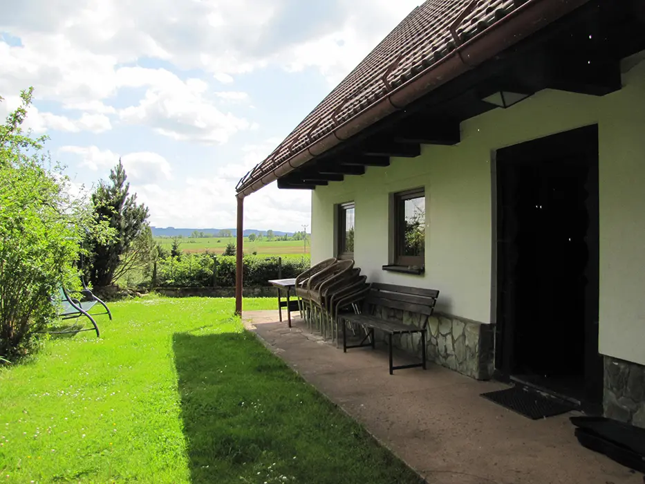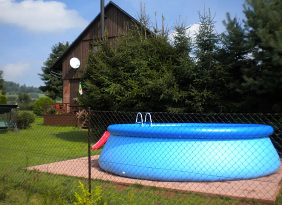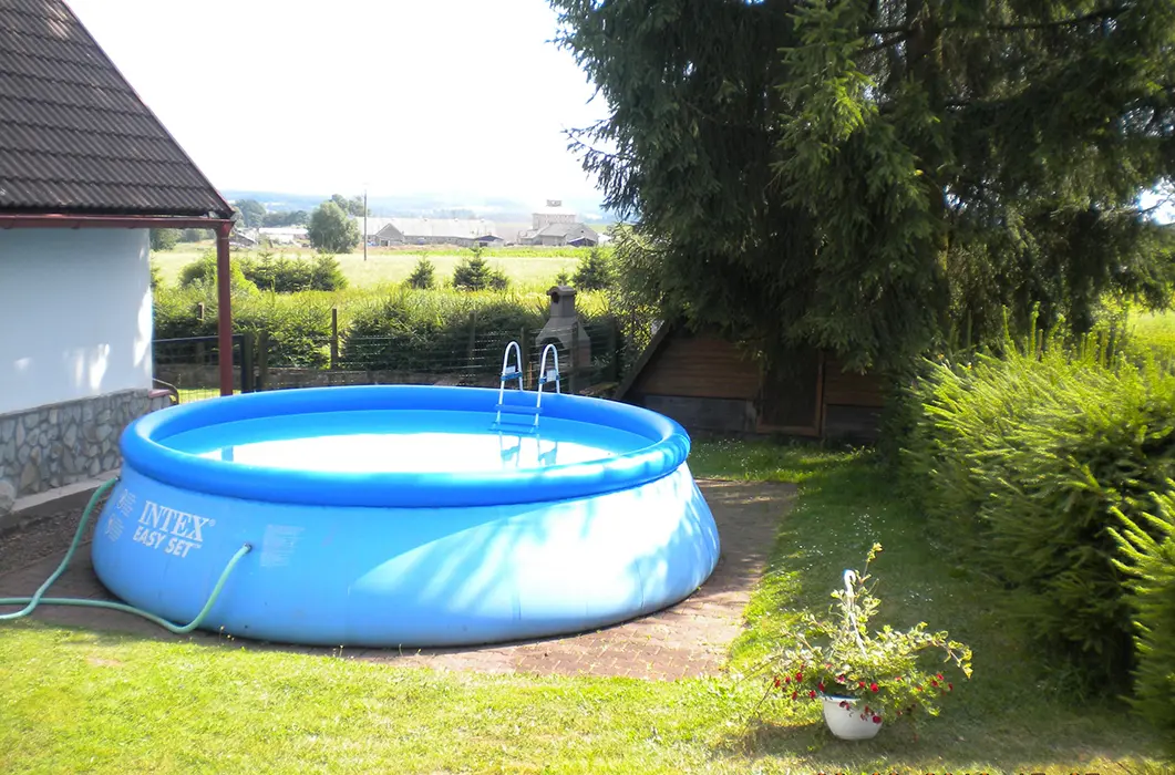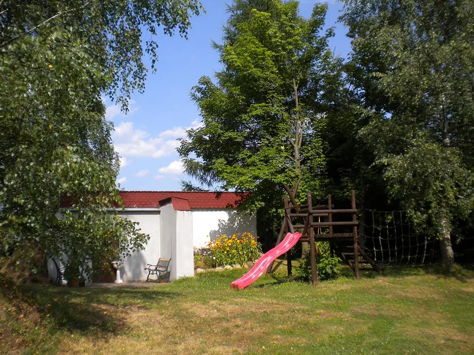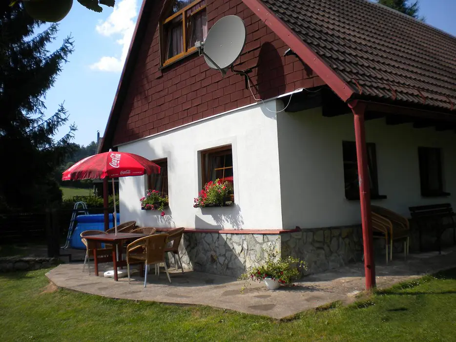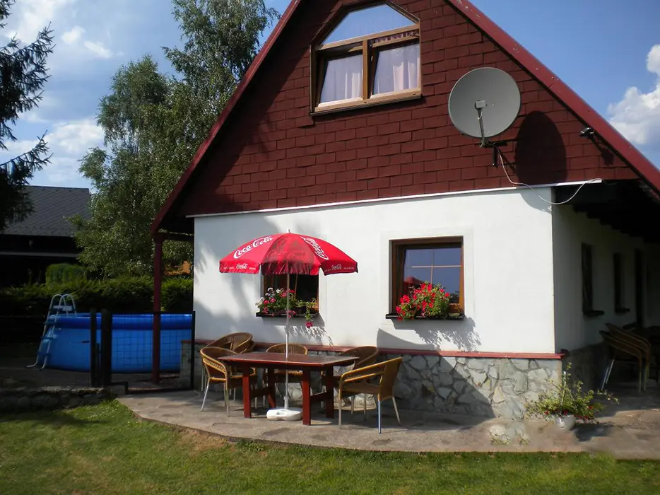 Venkovní terasa s posezením, zahradní krb, nadzemní bazén 4,5 m x 1,05 m, malý sportovní areál ( dětské hřiště, pískoviště, prolézačka, basketbalový koš, fotbal, volejbal ). Po dohodě s majitelem možnost zapůjčení horských kol.