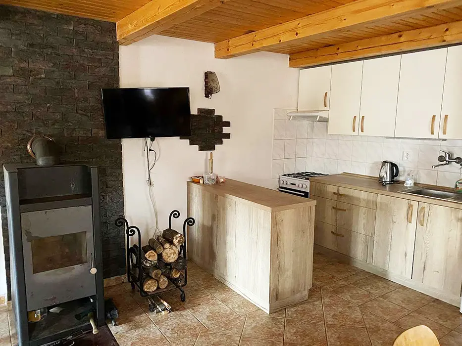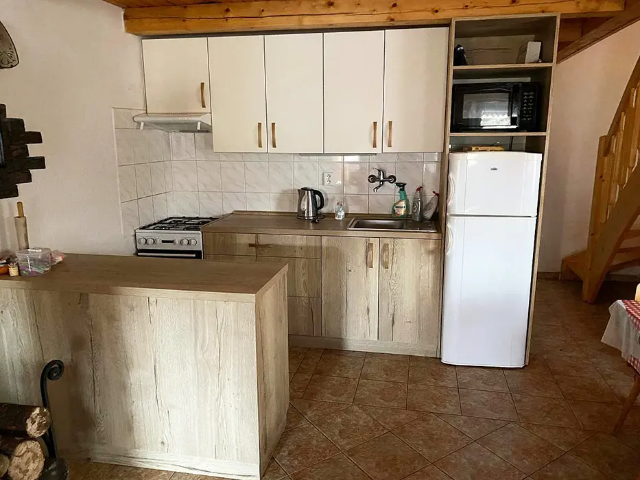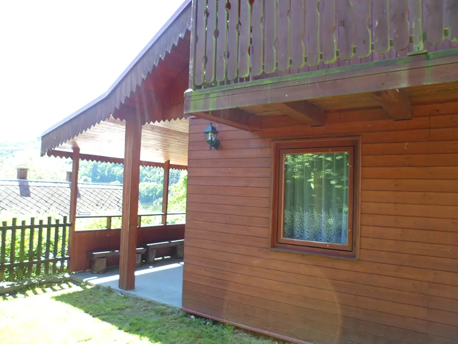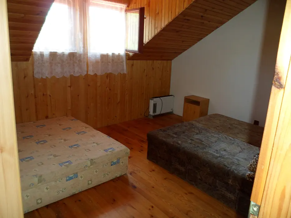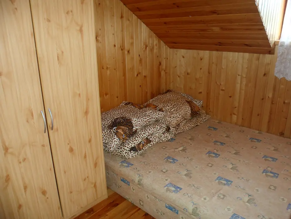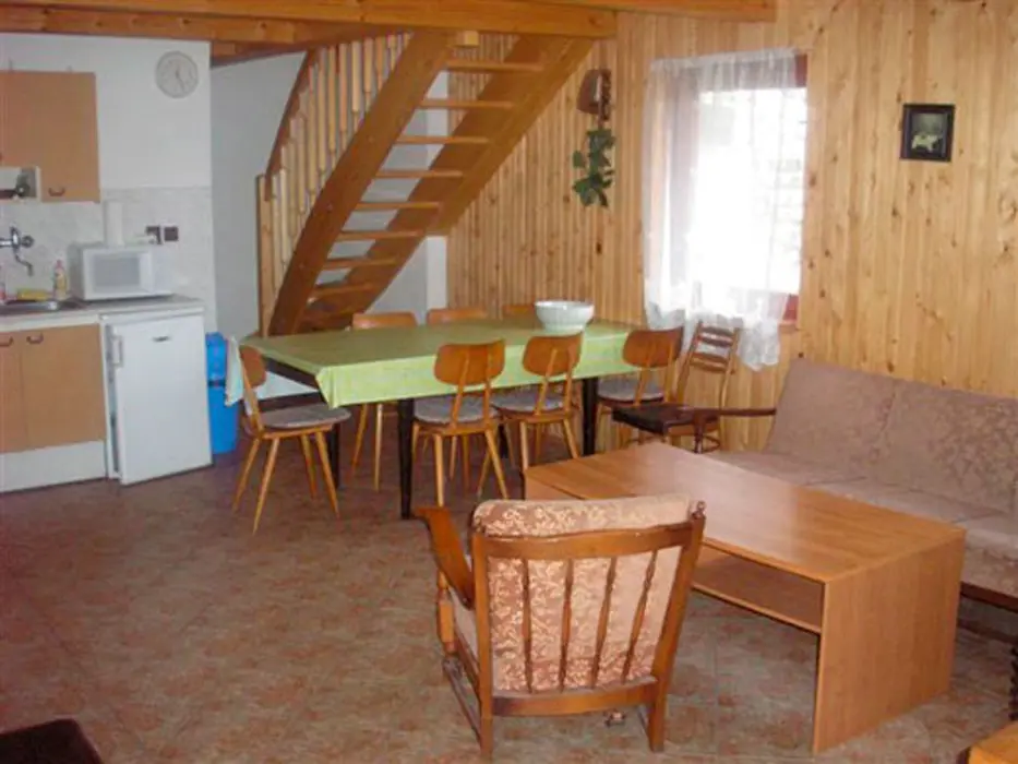 Jedná se o dvojchatu - 1/2 se nepronajímá, druhá část: posezení, vlastní vchod. Kuchyňský kout propojený se společenskou místností, TV, SAT, lednice, mrazák, plynový sporák, elektrická trouba, mikrovlnná trouba, rychlovarná konvice, krbová kamna, jídelní stůl, židle. 2 ložnice 2x4 lůžka. Sociální zařízení - koupelna s WC a sprchovým koutem. Topení - krbová kamna, přímotopy.