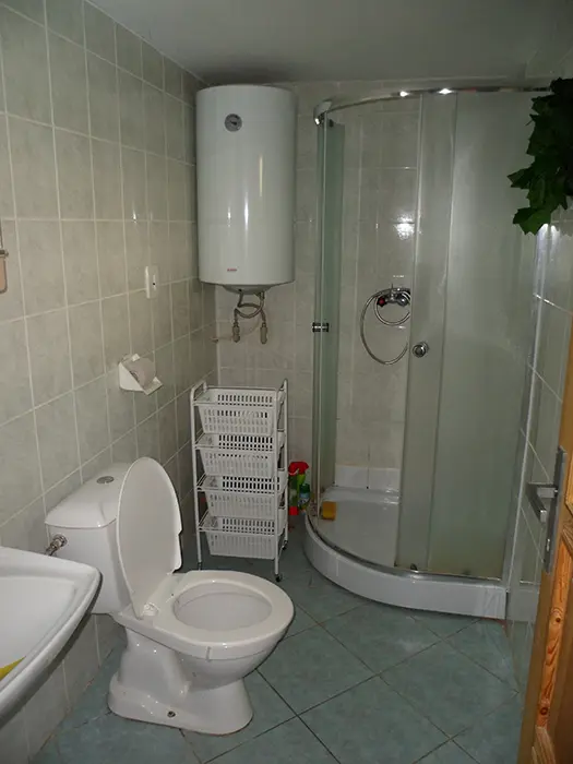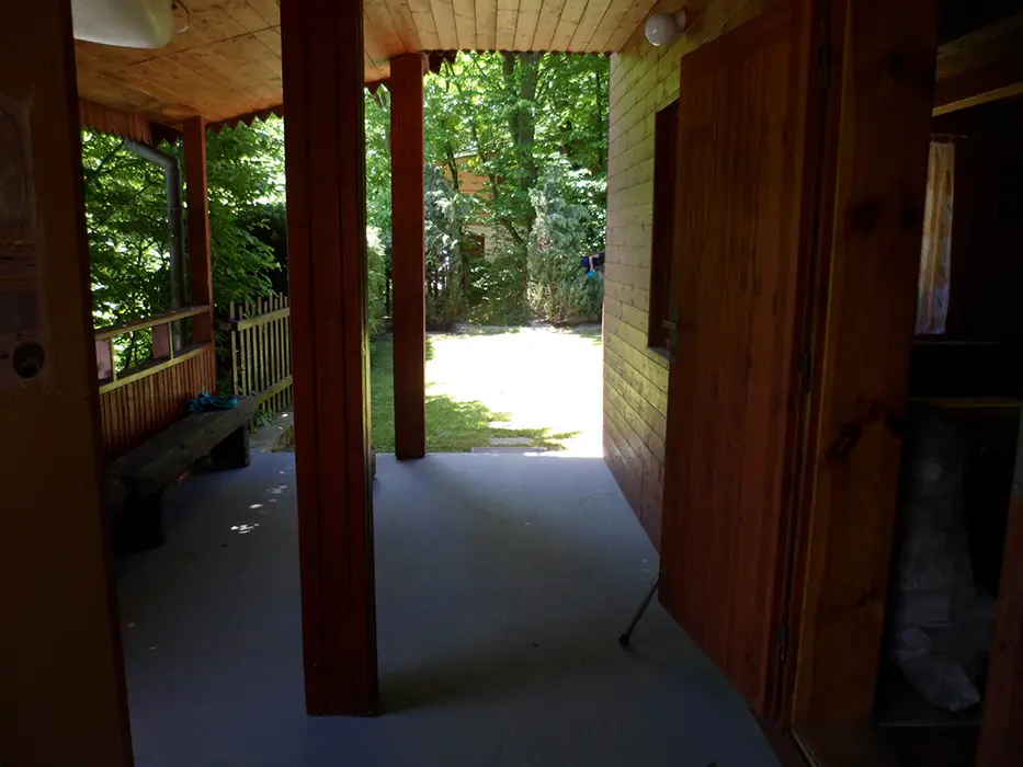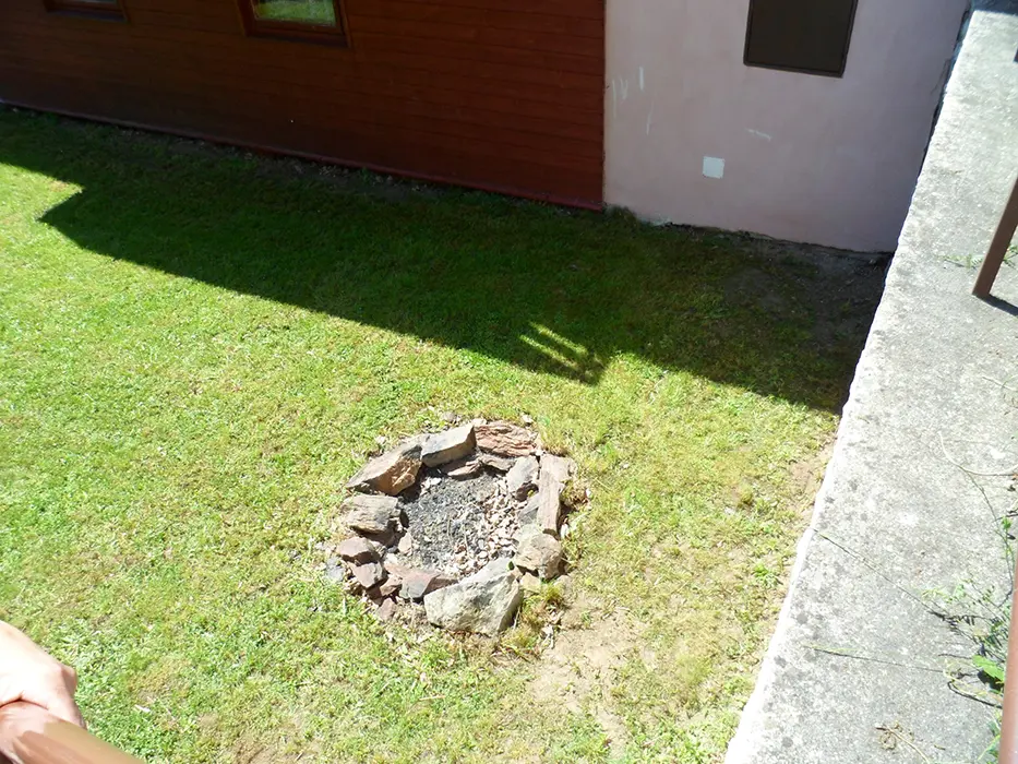 Horší přístupová lesní cesta - parkování u chaty cca 40 m - max 2 auta, ostatní 10 min chůze - v kempu