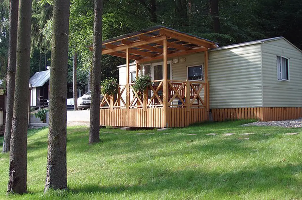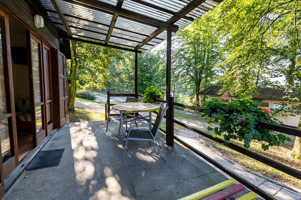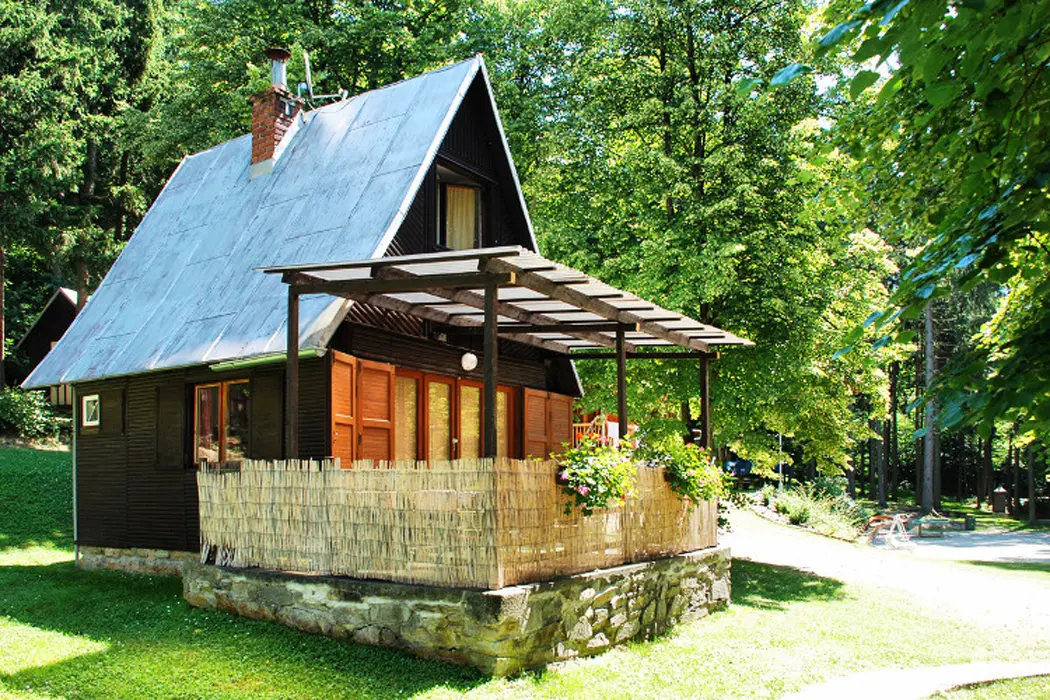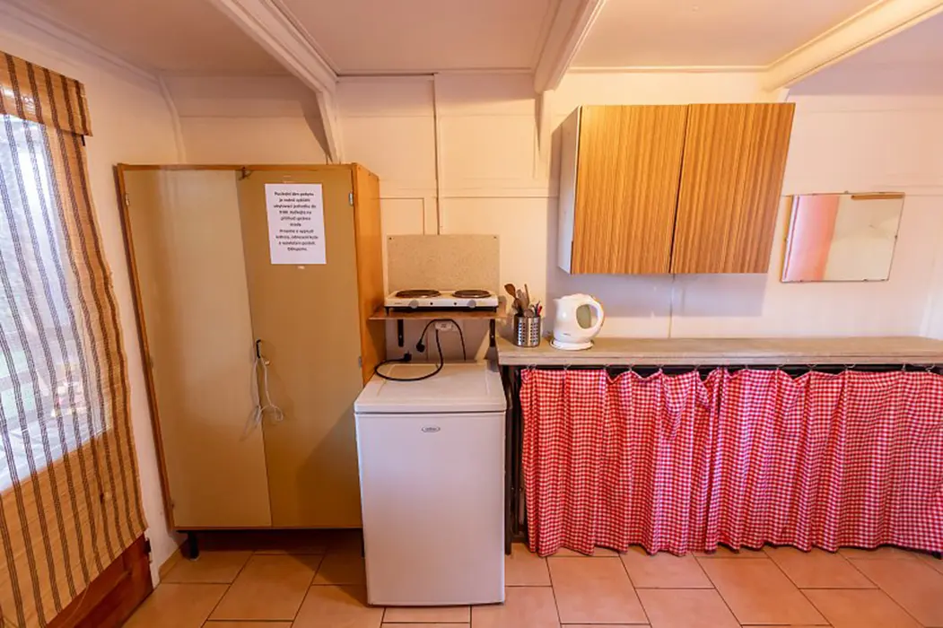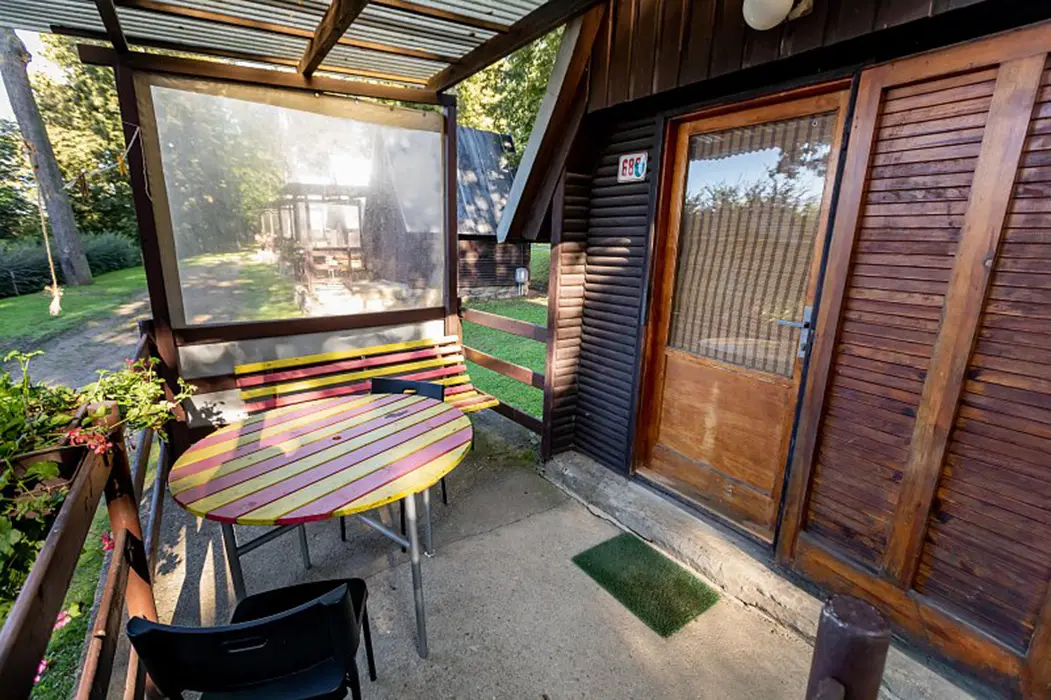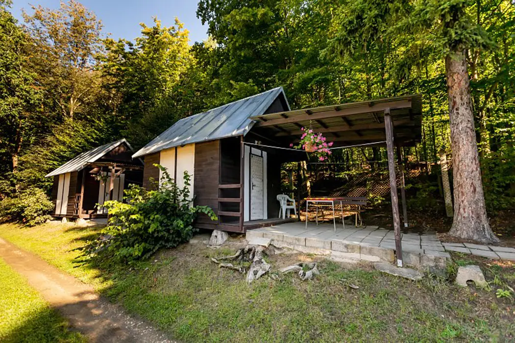 15 chatek ( 2-5 lůžkové ), v každé: zásuvka 220 V, osvětlení, lůžka, lůžkoviny, skříň na šaty, stolek, židle, lednička s mrazáčkem, vařič, rychlovarná konvice, základní nádobí, venkovní posezení, WC a sprchy jsou zdarma společné v areálu.