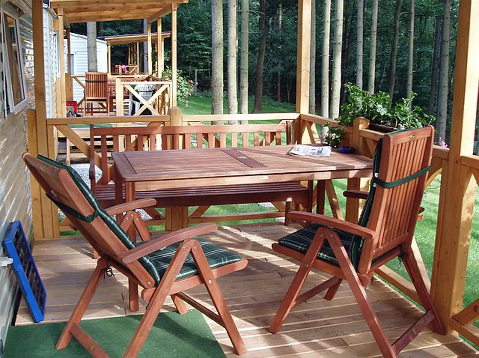 Ke každému bungalovu patří masivní dřevěná krytá venkovní pergola o rozměrech 4×3 m s posezením. Každý bungalov je vybaven dvěma oddělenými pokoji se 2 lůžky, kuchyní – sklokeramická varná deska, základní nádobí, lednice s mrazáčkem, mikrovlnná trouba a varná konvice. Je zde i jídelní kout + posezení - sedací souprava, která se dá rozložit na 2 přistýlky, BTV, SAT. V každém bungalovu je vlastní koupelna se sprchovým koutem, WC. Topení přímotopy.