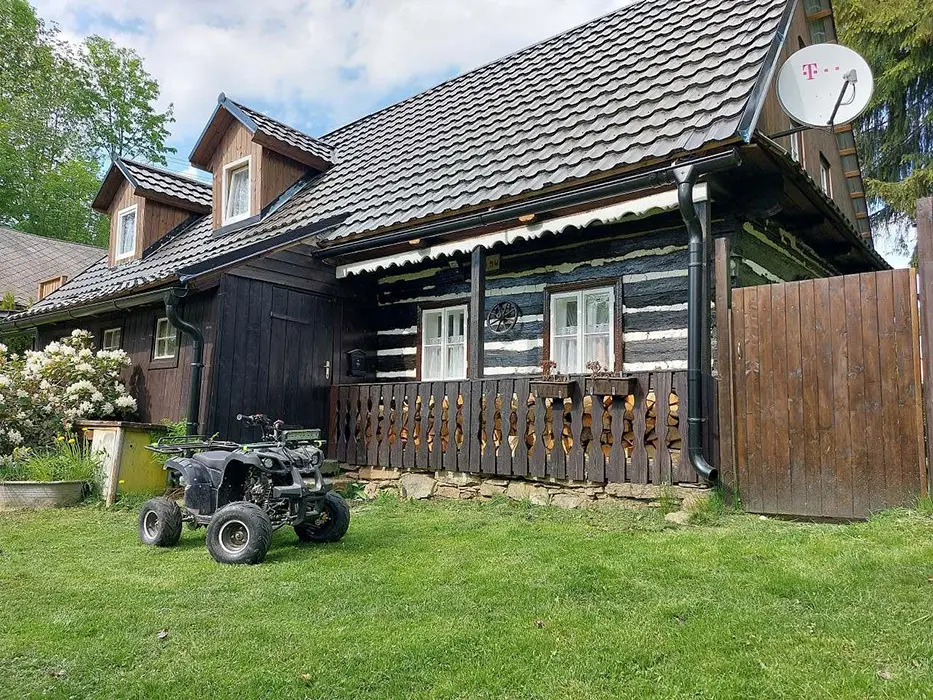 V létě u objektu, v zimě doporučujeme sněhové řetězy nebo na odstavném parkovišti 100 m od chalupy