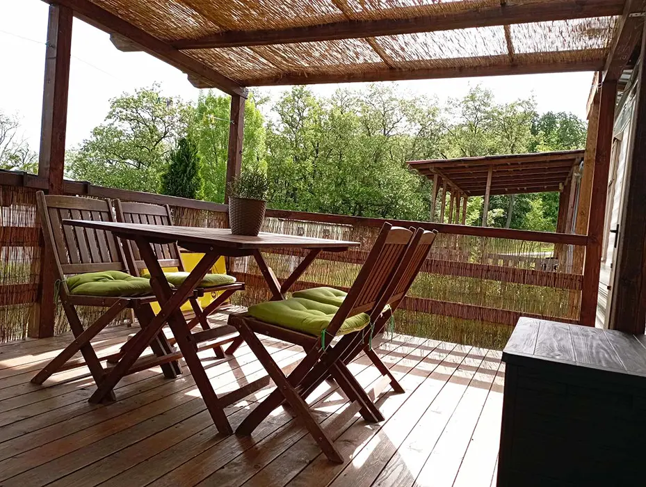 Jedná se o 2 mobilheimy - shodně vybavené - každý pro 6 os, každý má zastřešenou terasu s grilem, venkovní posezení