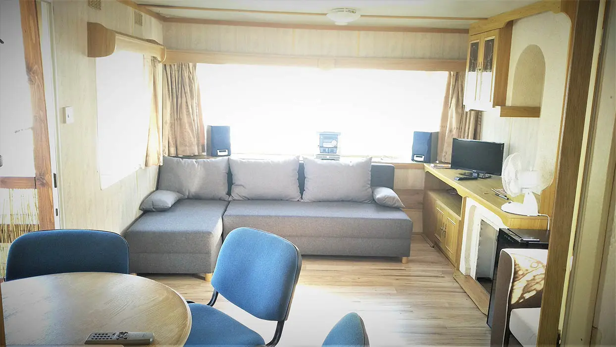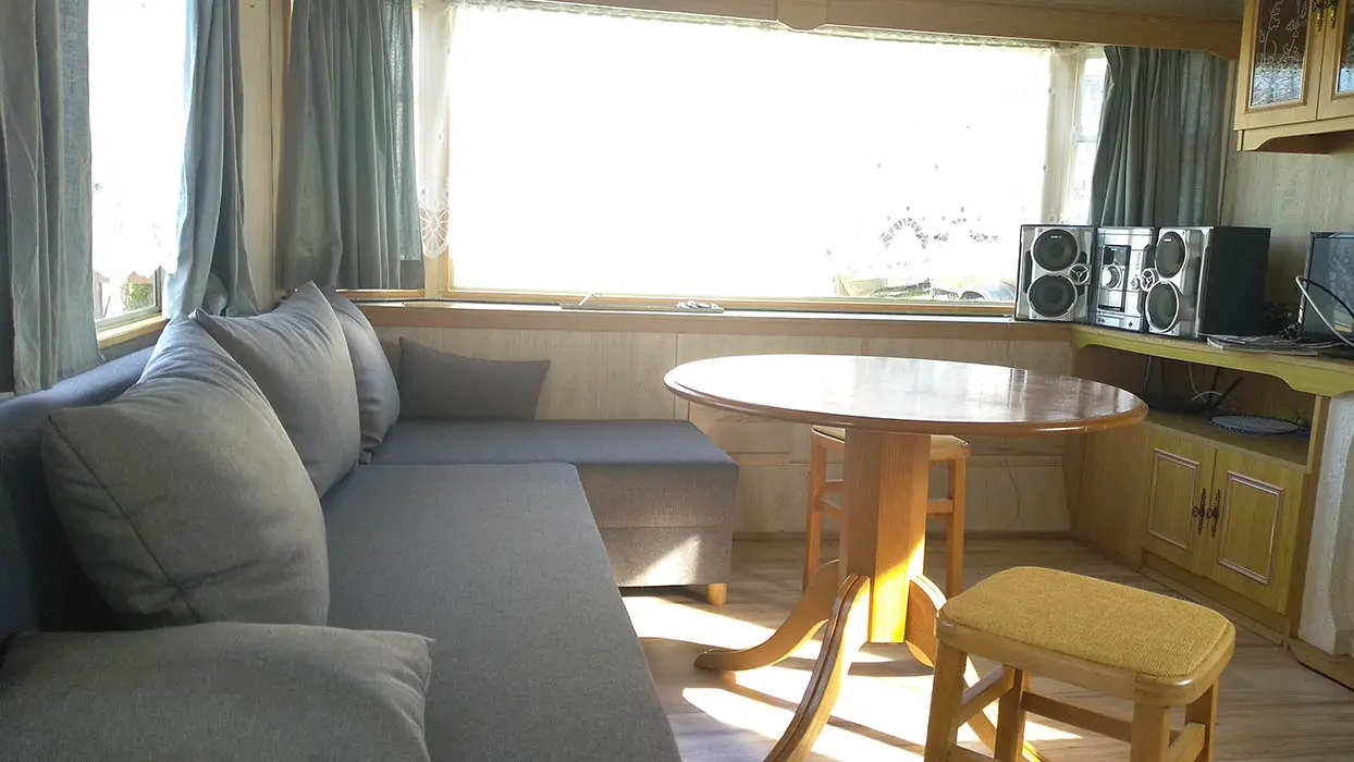 Obytná část s posezením - rozkládací gauče ( 110x190 cm, 130x213 cm ), CD