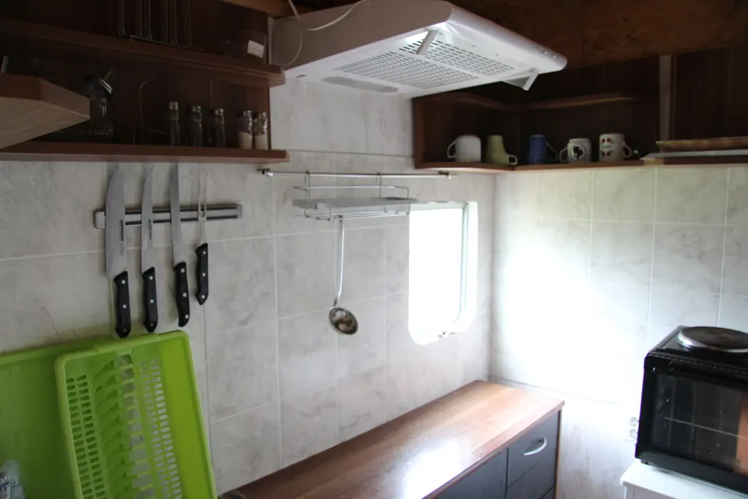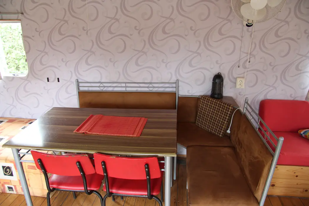 V jedné místnosti: kuchyňka - základní vybavení - el. vařič s troubou, nádobí, lednice, jídelní stůl a židle, TV, 4 lůžka, 1 přistýlka na rozkládacím gauči. Soc. zařízení - sprchový kout + WC. Topení - el. přímotopy