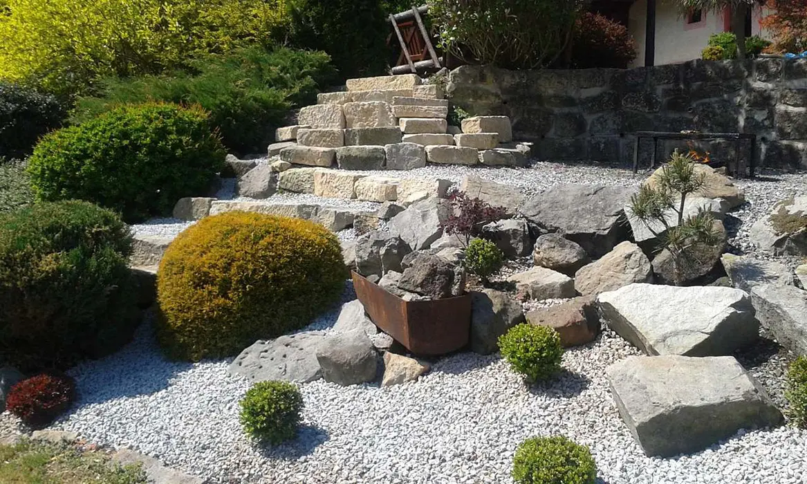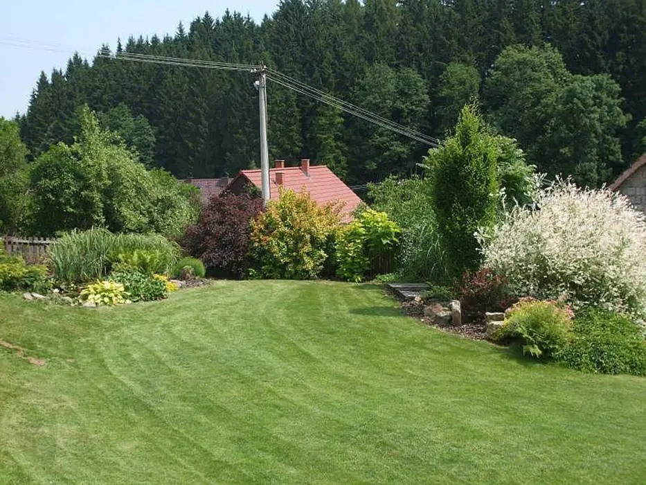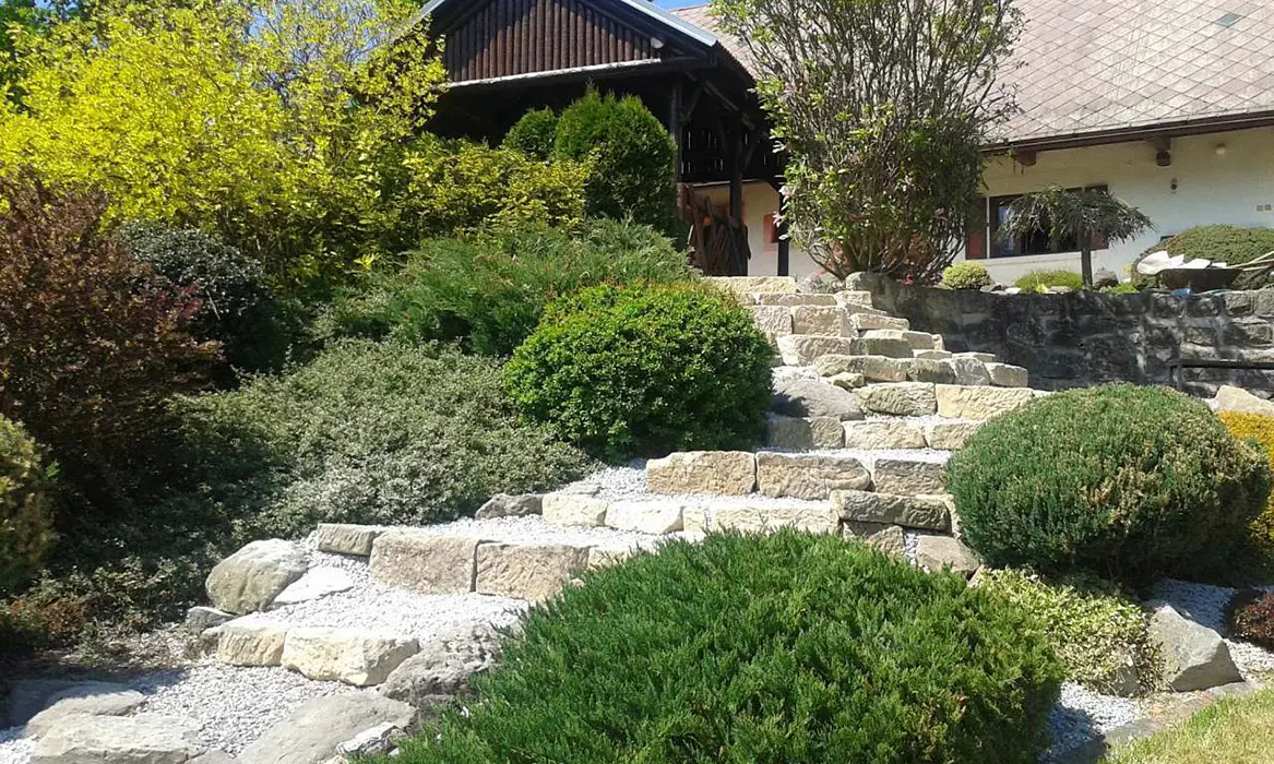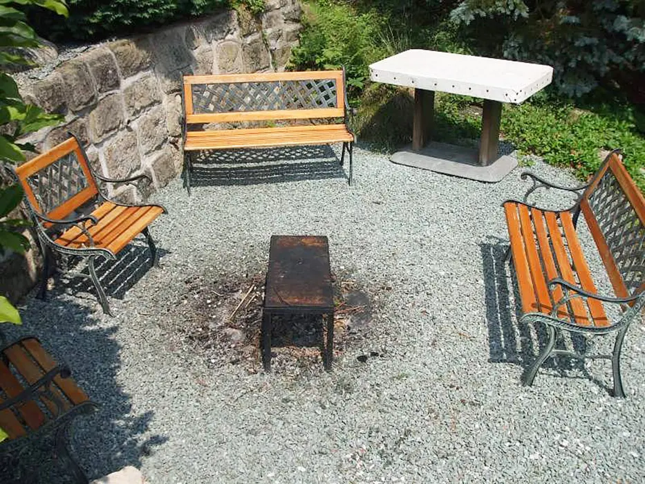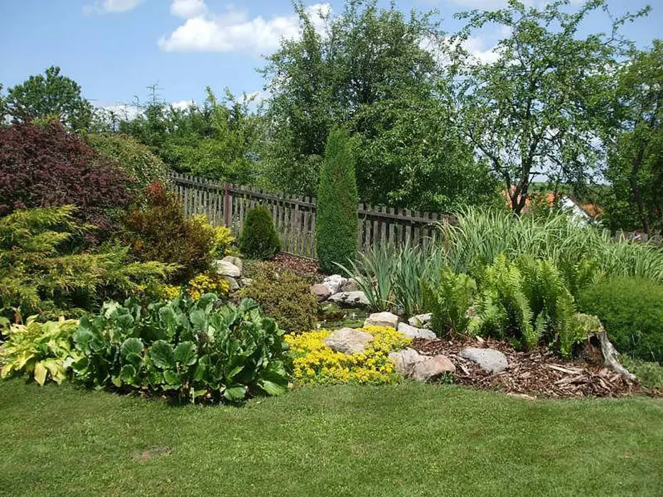 Udržovaná okrasná zahrada se skalkami, menší jezírko, ohniště s posezením, další posezení se zavěšenou houpací lavicí, velký masivní stůl s lavicí, dětské pískoviště a hračky, 300 m od chalupy malé fotbalové hřiště, k dispozici, badminton, elektronické šipky, zapuštěný bazén