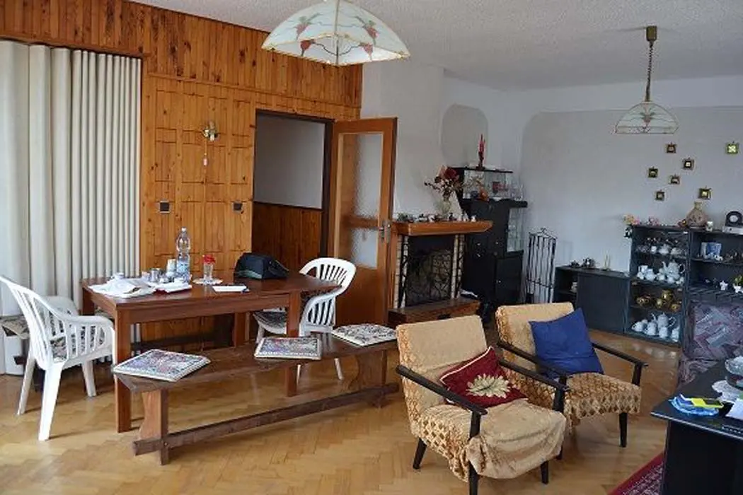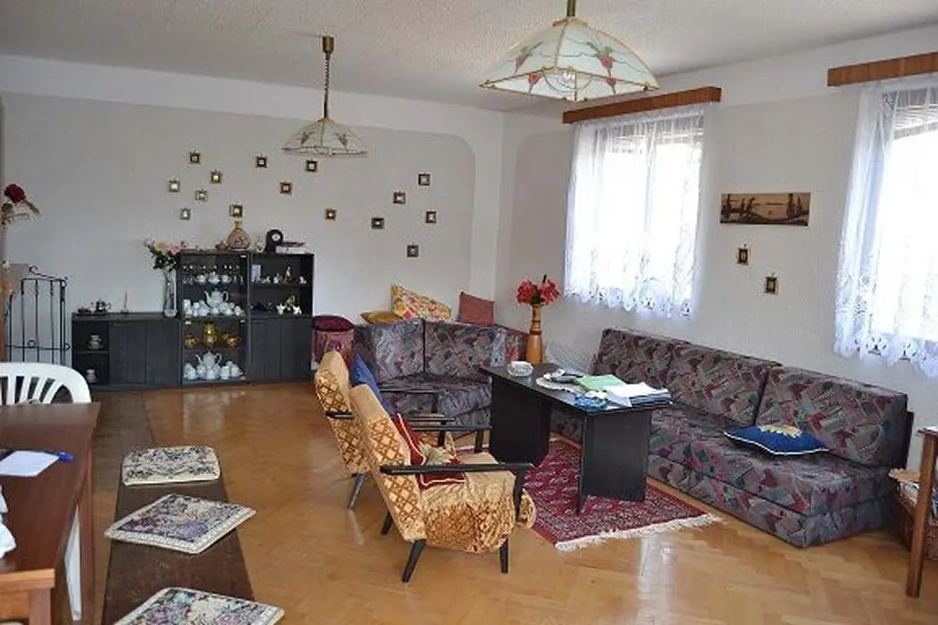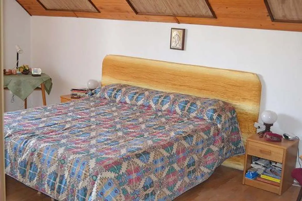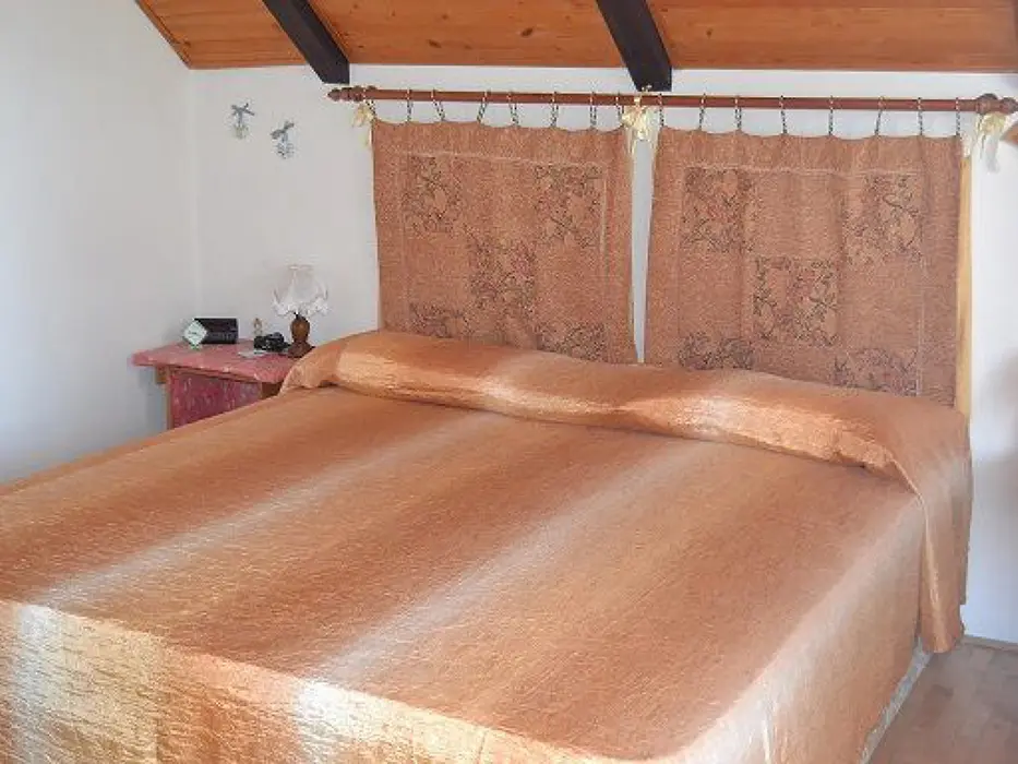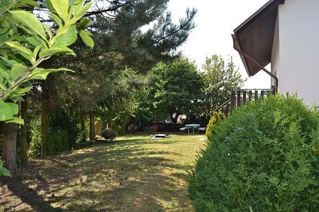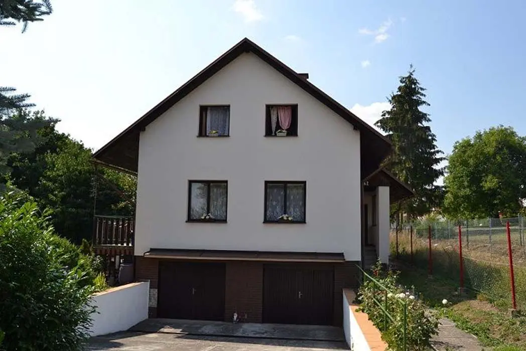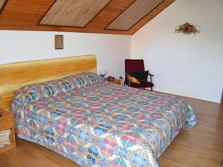 Velký obývací pokoj s krbem, TV, SAT, rádio, rozkládací gauč pro 2 osoby + 1 lůžko, vstup na velkou prosluněnou terasu, z terasy vstup na zahradu. Kuchyně - s jídelnou, el. sporák, lednice, varná konvice, mikrovlnka. V patře 3 ložnice - 2x2, 1x3 lůžka, dětská postýlka. Sociální zařízení - v přízemí sprcha, samostatné WC, v patře koupelna s vanou, bidetem, WC. Topení - el. vytápění