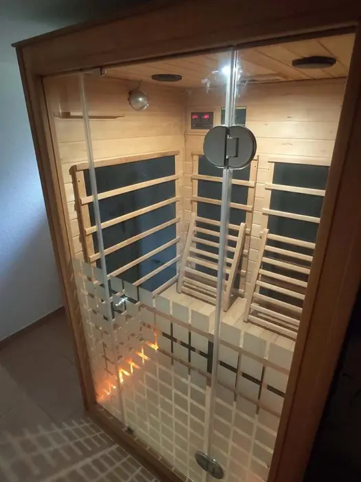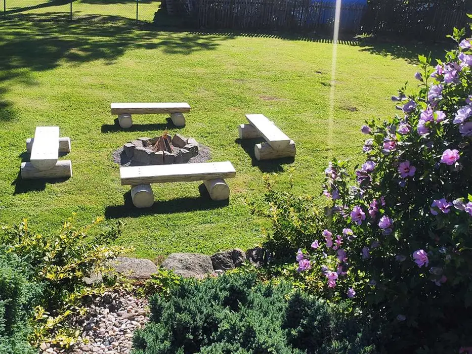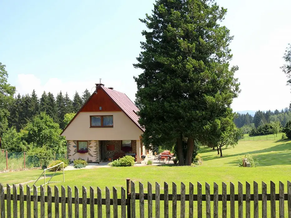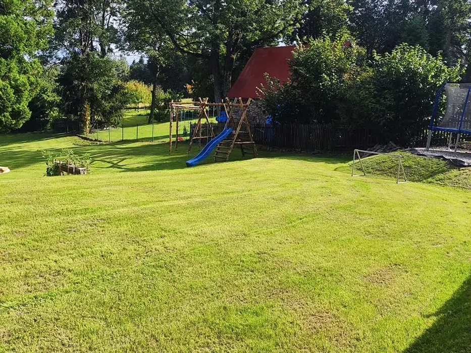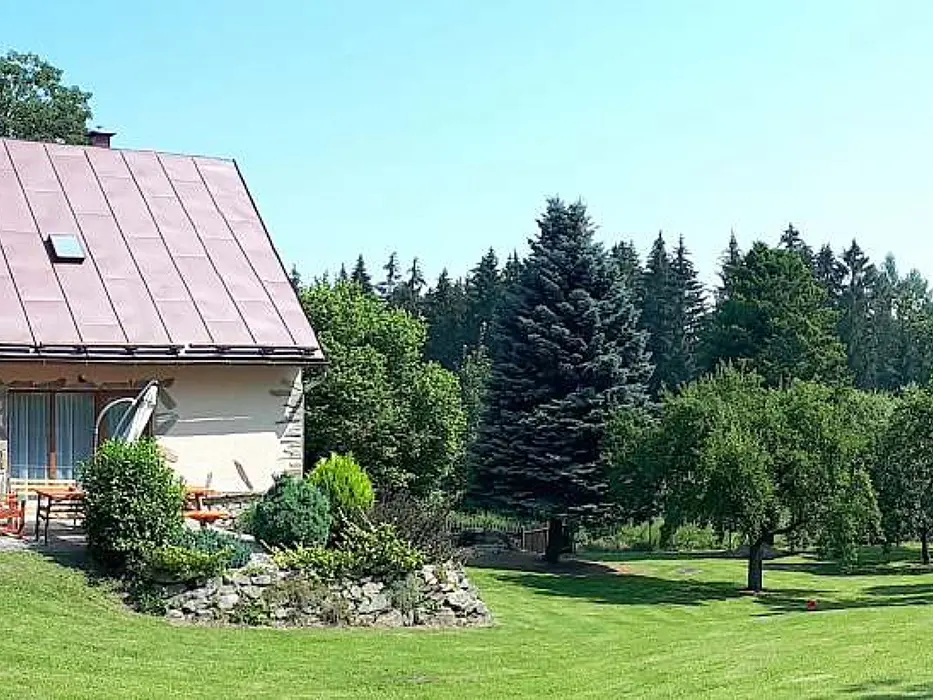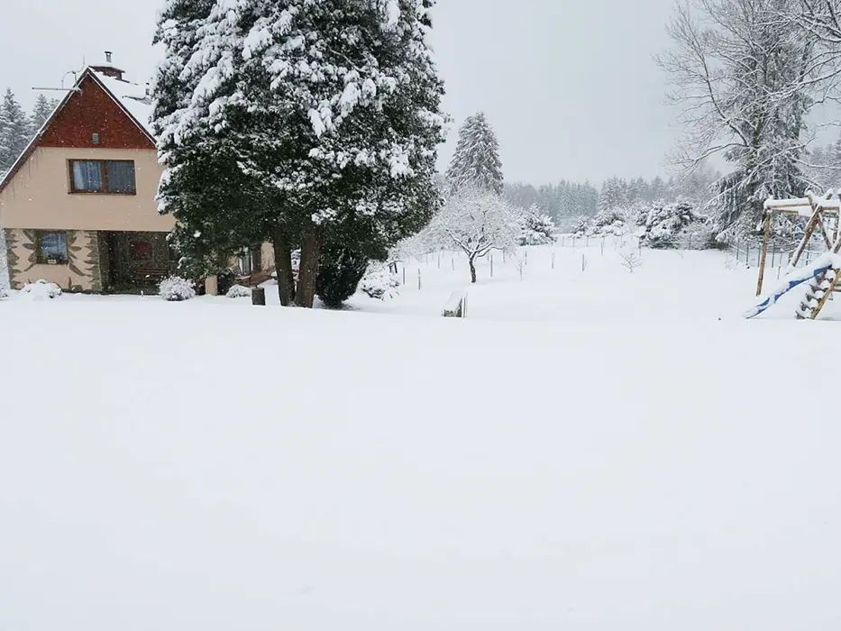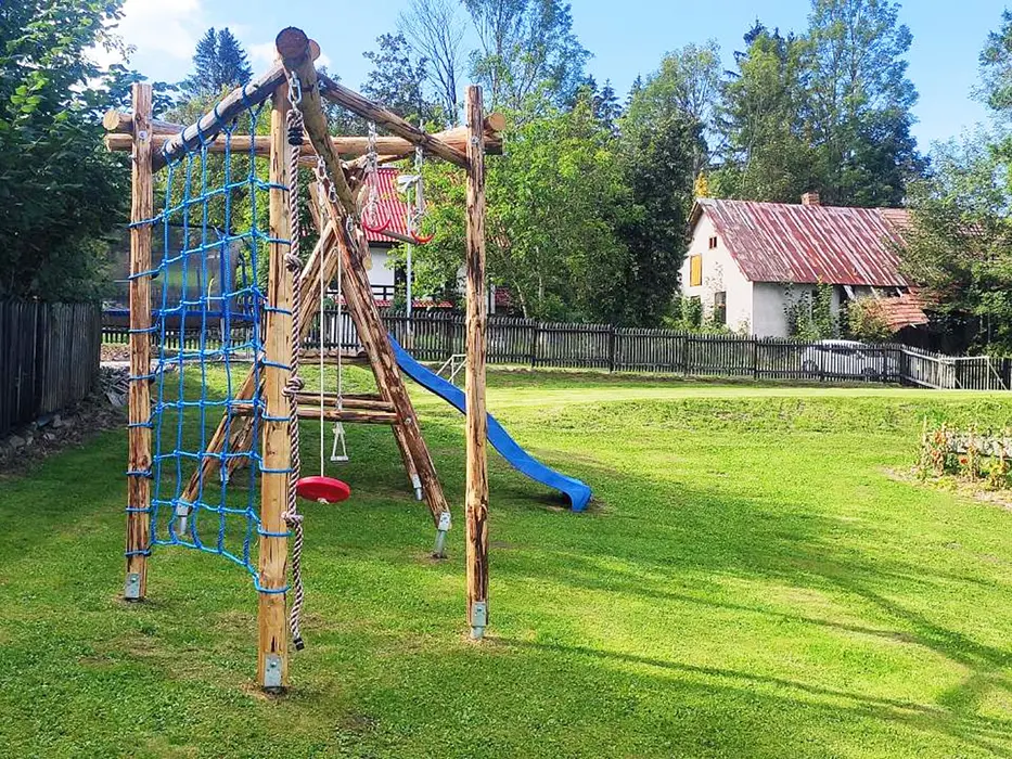 Venkovní posezení, gril, otevřené ohniště, malé okrasné vodní jezírko, pro děti - dětské hřiště, velká trampolína, pískoviště, možnost parkování kol, v suterénu WC s umyvadlem, autom. pračka, herna s krbovými kamny, klimatizační jednotka, stolní hra hockey